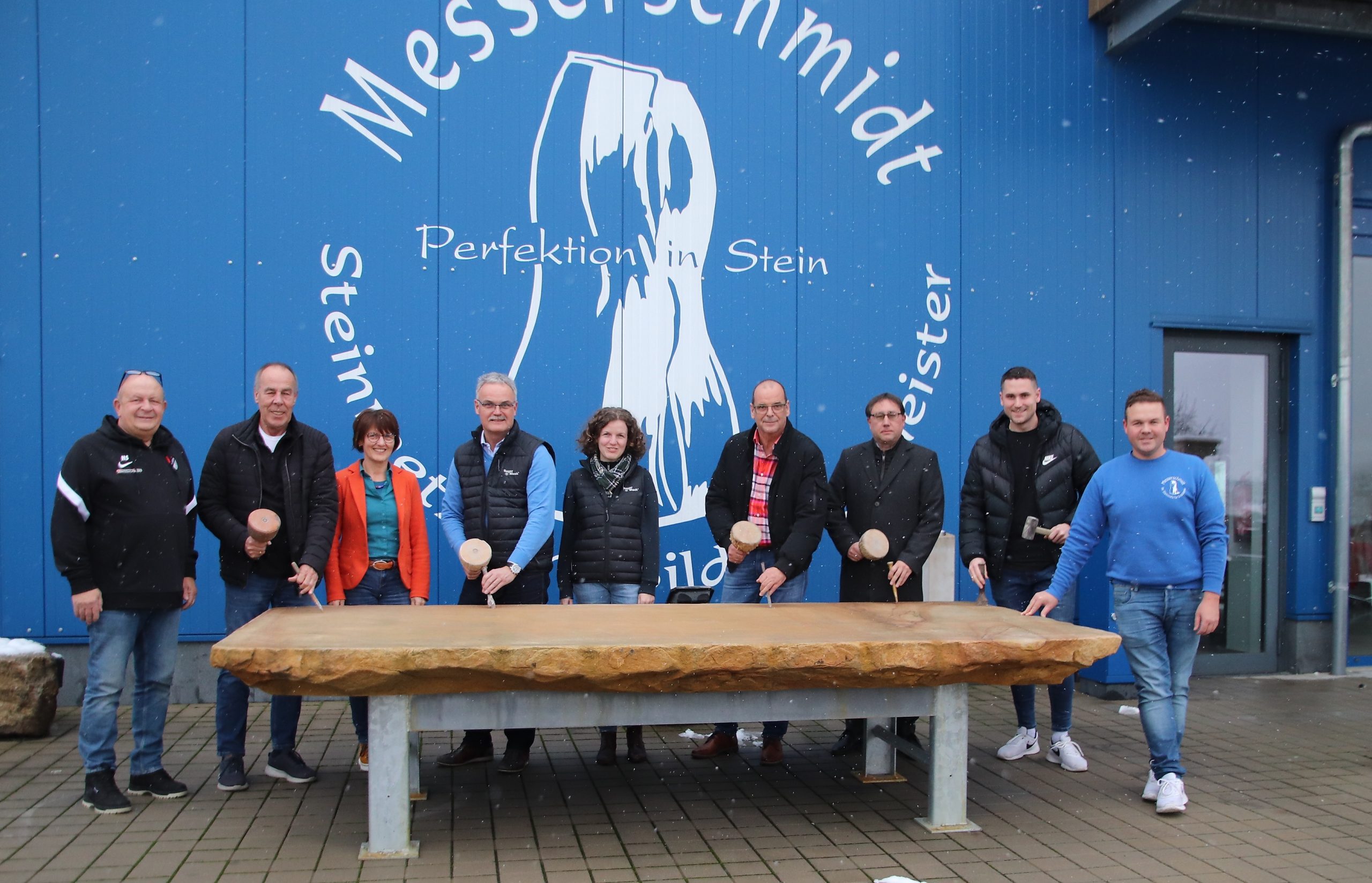 Eine weitere Zusammenarbeit zwischen TSV und Steinmetz ist übrigens bereits angedacht: Auf dem gepflasterten Weg ins Stadion soll ein „Walk of Fame“ entstehen. „Da sollen die Menschen geehrt werden, die sich für den Verein verdient gemacht haben. Sei es als langjähriger Vorsitzender, als langjähriger Unterstützer und so weiter“, erklärt TSV-Vorsitzender Herbert Schürl. Es wird also noch weitere Bilder an Knüpfel und Meißel geben.